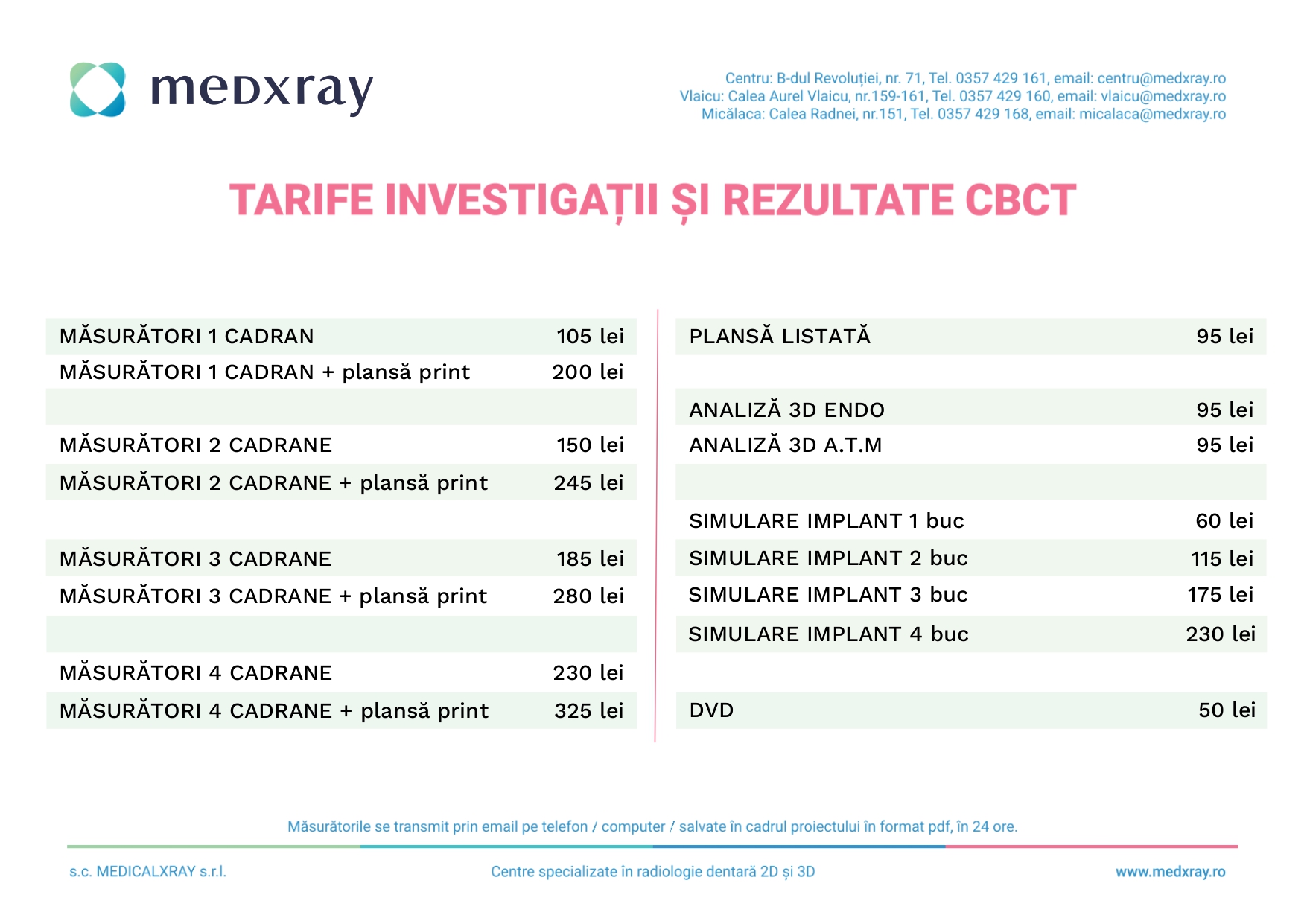 - Dupa iesirea din cabinetul de imagistica dentara nu raspundem de eventualele deteriorari ale filmului radiologic.
